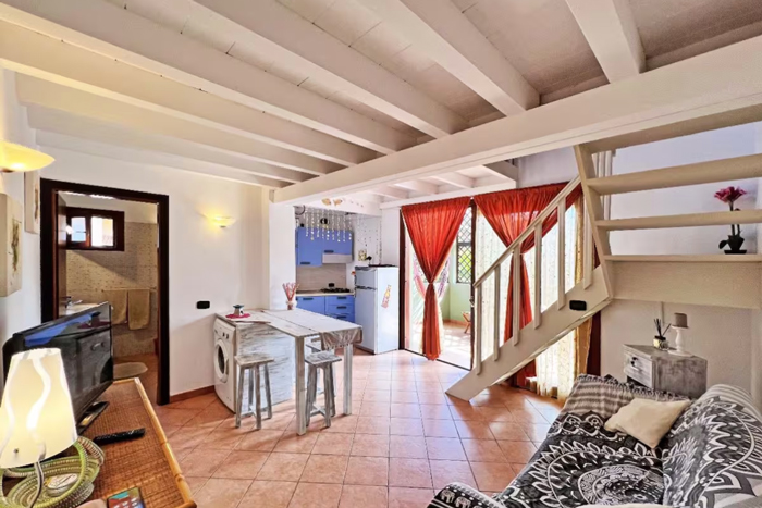 Above the loft is a public roof terrace where you can enjoy the evening sun and the beautiful views over Santa Maria with a table and chair.The loft consists of living room and recently renovated bathroom. The terrace is very big and contains a hammock and seating area. The Bedroom is located upstairs including Air conditioning and window.